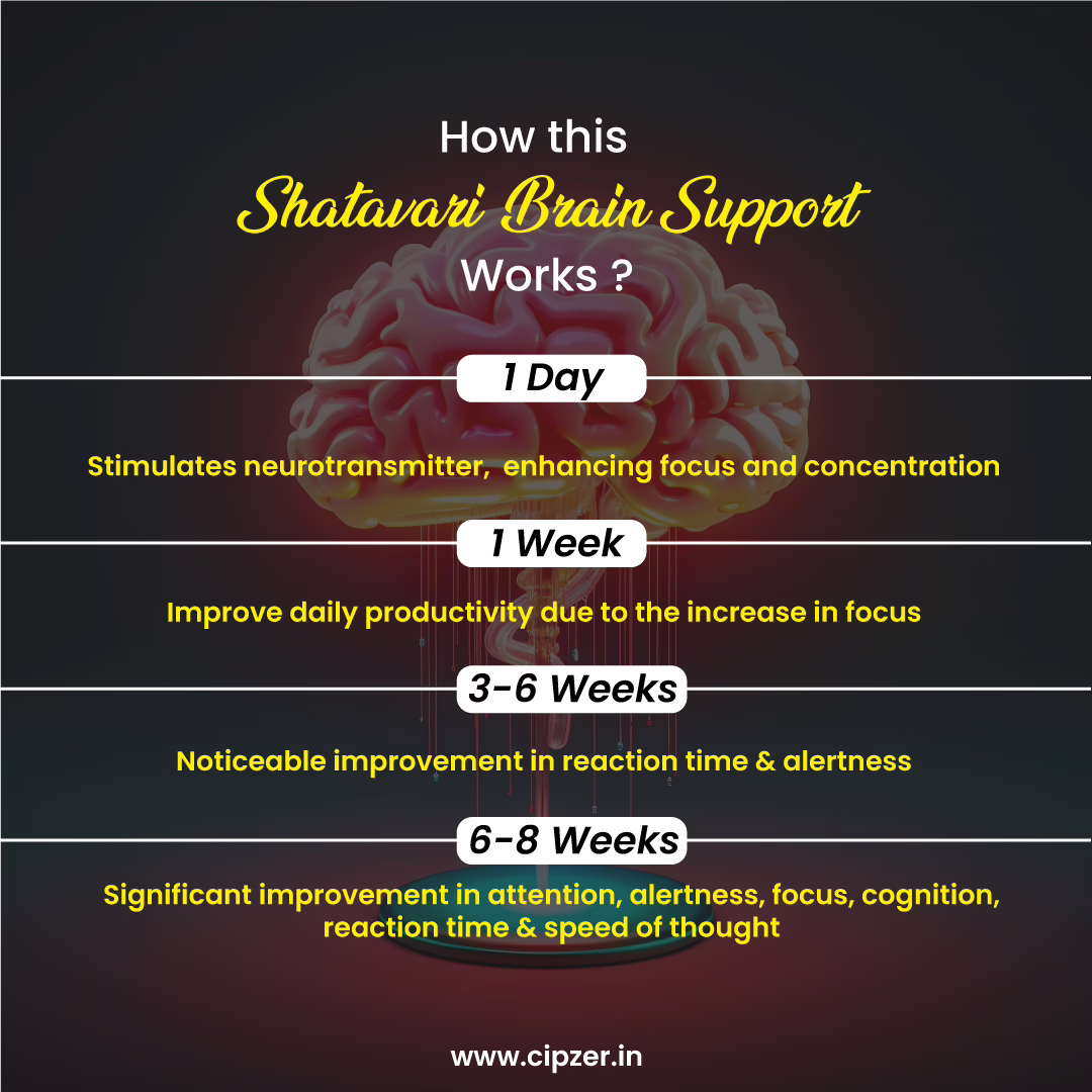 Cipzer shatavari capsule is highly beneficial for brain. It strengthens mind, prevents from stress and strains, sharpens memory , facilitates learning process