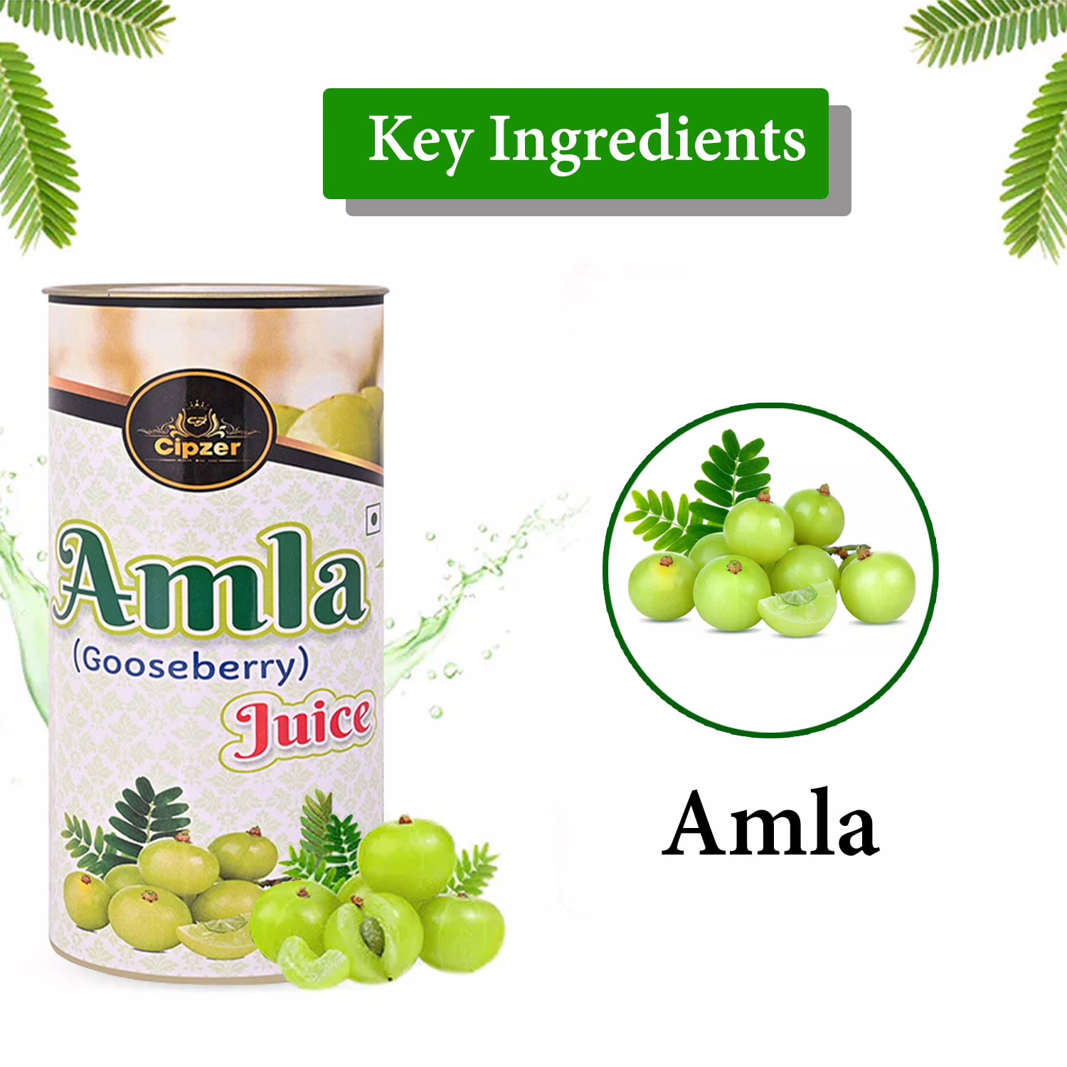 Amla juice is made from 100% pure indian goosberry or amla it possesses high amount of Vitamin-C and antioxidants which helps in promoting hair quality and as well as smoothness of skin it has several health benefits such as it treat in cold and cough.it is also beneficial for cholesterol