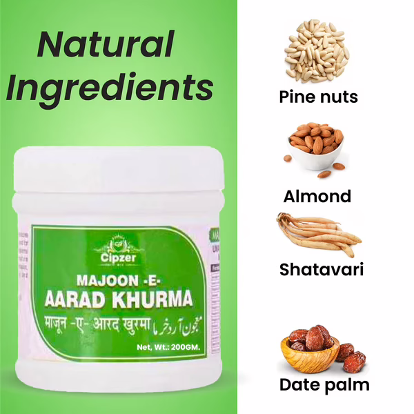 Cipzer Majoon-E-Aarad Khurma is an unani product which helps to reduce weakness and fatigue in men by restoring energy levels of the body. It helps to improve vigour and vitality. It aids in promoting physical strength of the body. It may also help to improve male reproductive health.